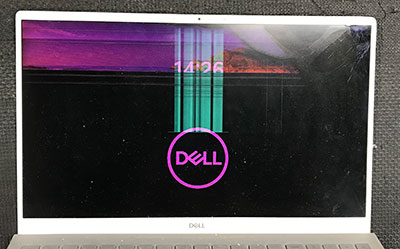 お送りいただいた Inspiron 5505 の液晶は、外装のへこみと同時に内部まで衝撃が及び、画面の表示が乱れていました。