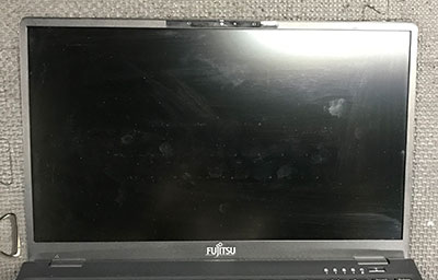 京都府からご依頼いただいた富士通 LIFEBOOK U9312/KX(FMVU4906AP)は、キーボード上に物を置いたまま閉じたことで液晶が破損し、画面が真っ暗になる状態でした。