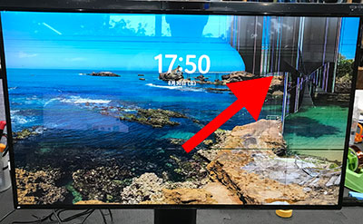 破損部分が画面全体に影響し、正常な表示ができない状態で、動画視聴や業務利用に大きな支障が出ていました。