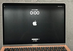 お預かりした MacBook Air M1 は、電源を入れると画面中央にカラフルな縦線が入り、その周囲は黒く潰れた表示になっていました。